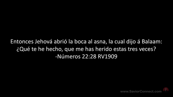 Entonces Jehová abrió la boca al asna, la cual dijo á Balaam: ¿Qué te he hecho, que me has herido estas tres veces? -Números 22:28 RV1909