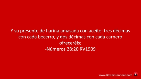 Y su presente de harina amasada con aceite: tres décimas con cada becerro, y dos décimas con cada carnero ofreceréis; -Números 28:20 RV1909