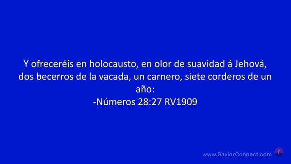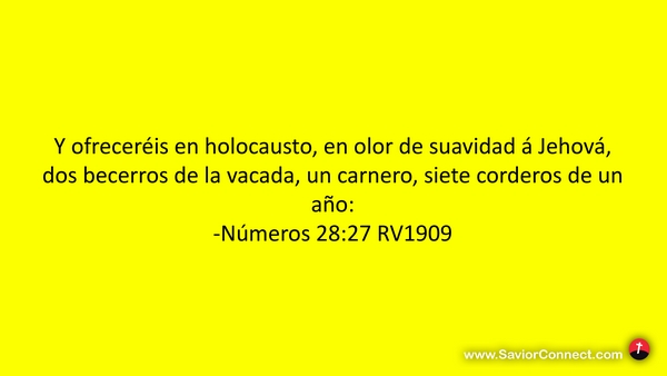 Y ofreceréis en holocausto, en olor de suavidad á Jehová, dos becerros de la vacada, un carnero, siete corderos de un año: -Números 28:27 RV1909