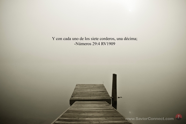 Y con cada uno de los siete corderos, una décima; -Números 29:4 RV1909