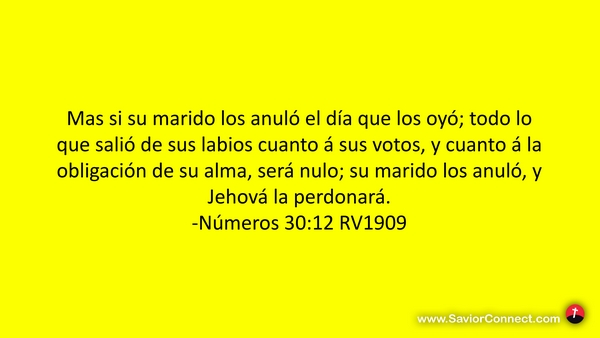Mas si su marido los anuló el día que los oyó; todo lo que salió de sus labios cuanto á sus votos, y cuanto á la obligación de su alma, será nulo; su marido los anuló, y Jehová la perdonará. -Números 30:12 RV1909