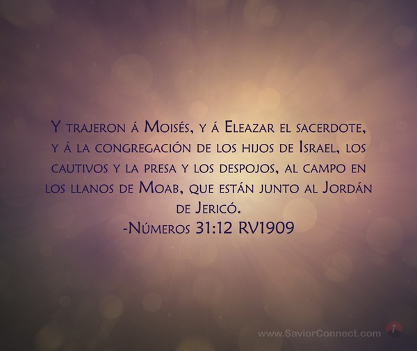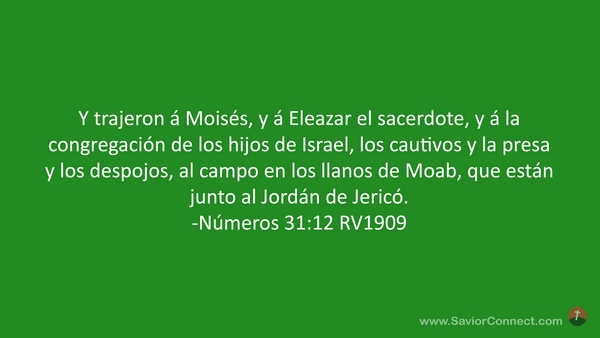 Y trajeron á Moisés, y á Eleazar el sacerdote, y á la congregación de los hijos de Israel, los cautivos y la presa y los despojos, al campo en los llanos de Moab, que están junto al Jordán de Jericó. -Números 31:12 RV1909