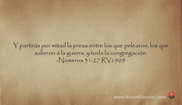 Y partirás por mitad la presa entre los que pelearon, los que salieron á la guerra, y toda la congregación. -Números 31:27 RV1909