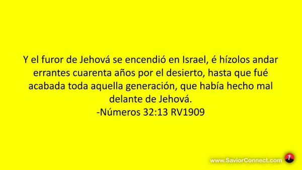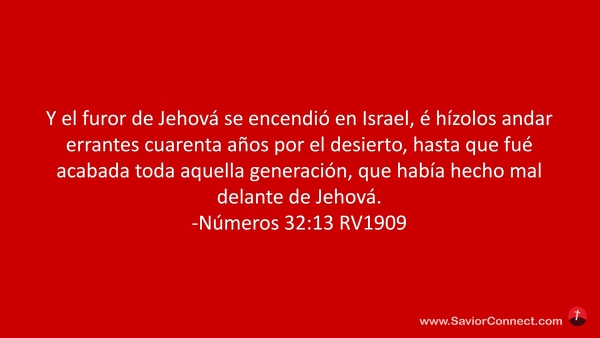 Y el furor de Jehová se encendió en Israel, é hízolos andar errantes cuarenta años por el desierto, hasta que fué acabada toda aquella generación, que había hecho mal delante de Jehová. -Números 32:13 RV1909