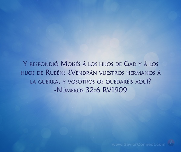 Y respondió Moisés á los hijos de Gad y á los hijos de Rubén: ¿Vendrán vuestros hermanos á la guerra, y vosotros os quedaréis aquí? -Números 32:6 RV1909