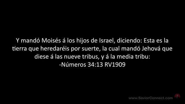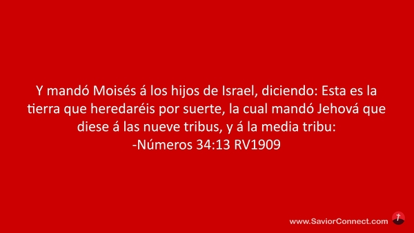 Y mandó Moisés á los hijos de Israel, diciendo: Esta es la tierra que heredaréis por suerte, la cual mandó Jehová que diese á las nueve tribus, y á la media tribu: -Números 34:13 RV1909