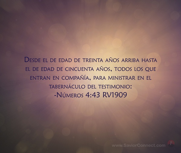 Desde el de edad de treinta años arriba hasta el de edad de cincuenta años, todos los que entran en compañía, para ministrar en el tabernáculo del testimonio: -Números 4:43 RV1909