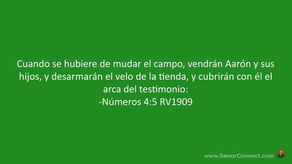Cuando se hubiere de mudar el campo, vendrán Aarón y sus hijos, y desarmarán el velo de la tienda, y cubrirán con él el arca del testimonio: -Números 4:5 RV1909