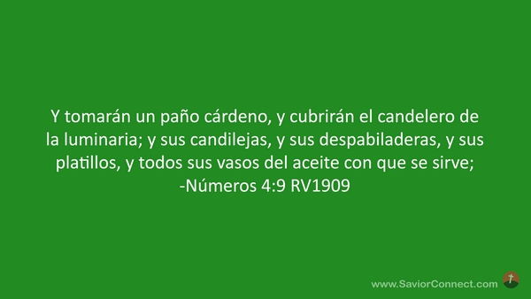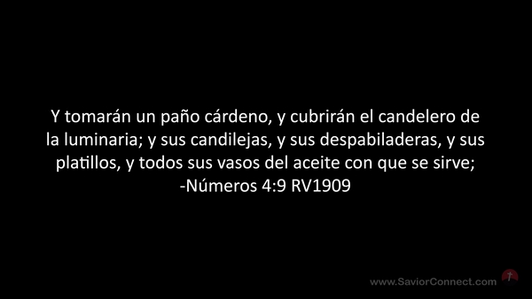 Y tomarán un paño cárdeno, y cubrirán el candelero de la luminaria; y sus candilejas, y sus despabiladeras, y sus platillos, y todos sus vasos del aceite con que se sirve; -Números 4:9 RV1909