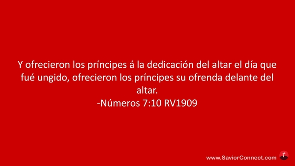 Y ofrecieron los príncipes á la dedicación del altar el día que fué ungido, ofrecieron los príncipes su ofrenda delante del altar. -Números 7:10 RV1909