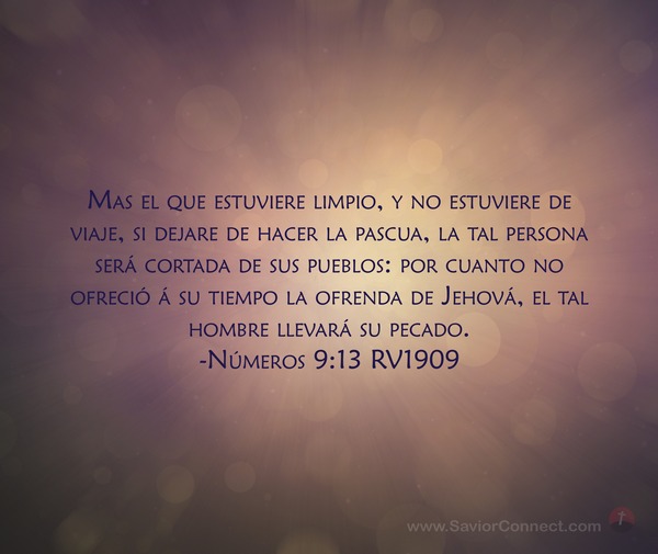 Mas el que estuviere limpio, y no estuviere de viaje, si dejare de hacer la pascua, la tal persona será cortada de sus pueblos: por cuanto no ofreció á su tiempo la ofrenda de Jehová, el tal hombre llevará su pecado. -Números 9:13 RV1909
