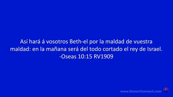 Así hará á vosotros Beth-el por la maldad de vuestra maldad: en la mañana será del todo cortado el rey de Israel. -Oseas 10:15 RV1909
