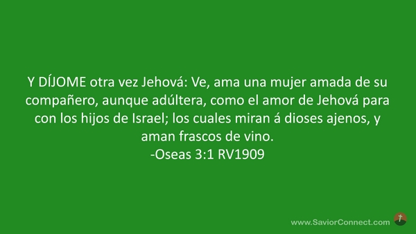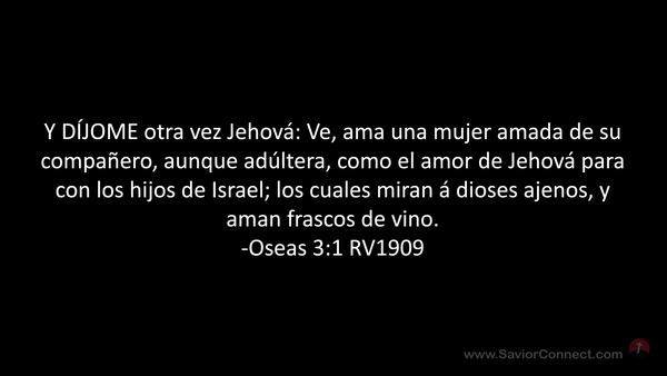 Y DÍJOME otra vez Jehová: Ve, ama una mujer amada de su compañero, aunque adúltera, como el amor de Jehová para con los hijos de Israel; los cuales miran á dioses ajenos, y aman frascos de vino. -Oseas 3:1 RV1909