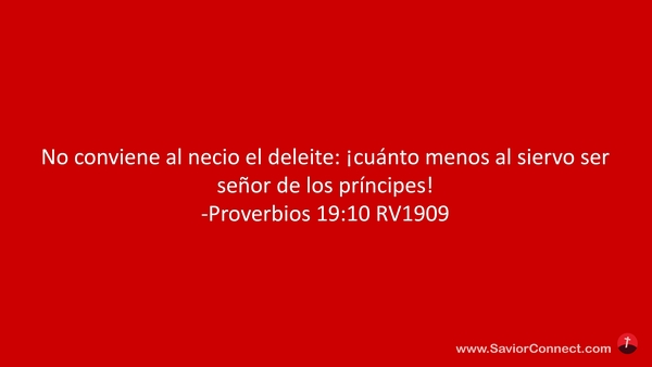 No conviene al necio el deleite: ¡cuánto menos al siervo ser señor de los príncipes! -Proverbios 19:10 RV1909