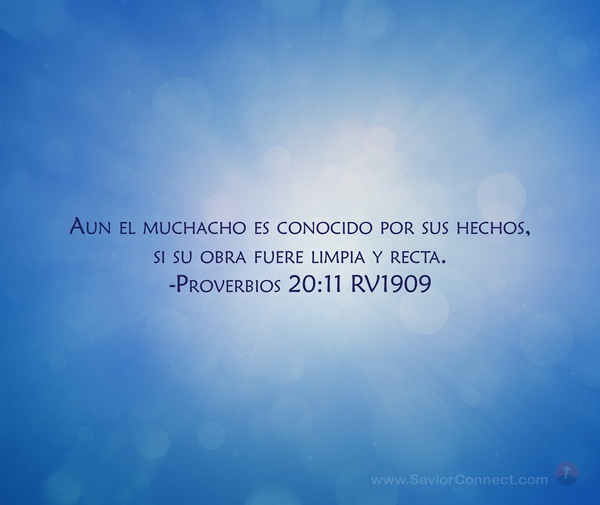 Aun el muchacho es conocido por sus hechos, si su obra fuere limpia y recta. -Proverbios 20:11 RV1909