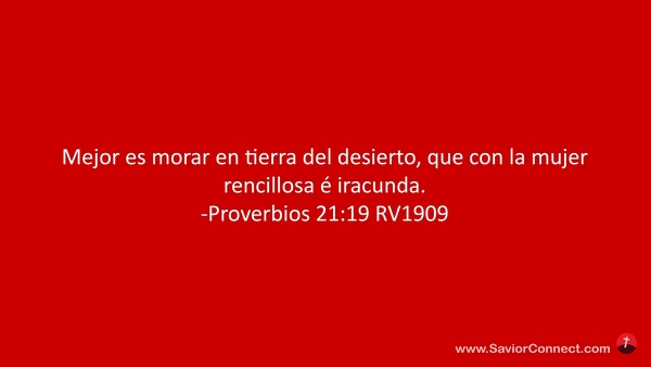 Mejor es morar en tierra del desierto, que con la mujer rencillosa é iracunda. -Proverbios 21:19 RV1909