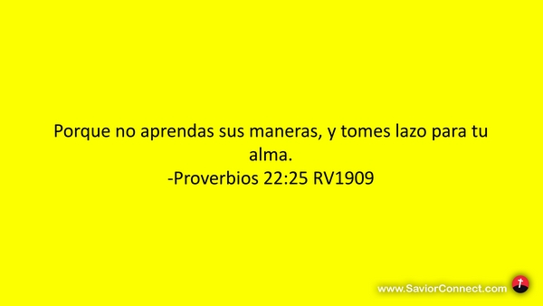 Porque no aprendas sus maneras, y tomes lazo para tu alma. -Proverbios 22:25 RV1909