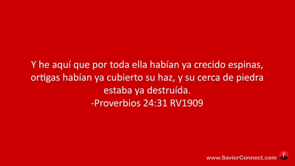 Y he aquí que por toda ella habían ya crecido espinas, ortigas habían ya cubierto su haz, y su cerca de piedra estaba ya destruída. -Proverbios 24:31 RV1909