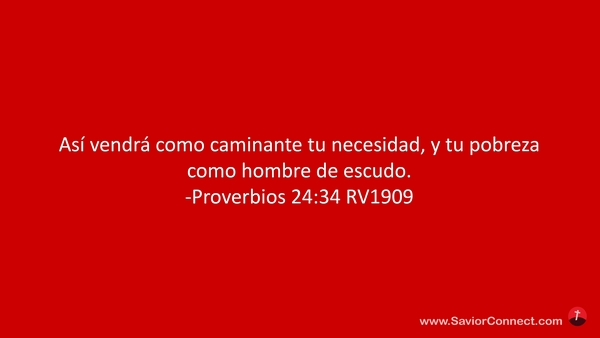 Así vendrá como caminante tu necesidad, y tu pobreza como hombre de escudo. -Proverbios 24:34 RV1909