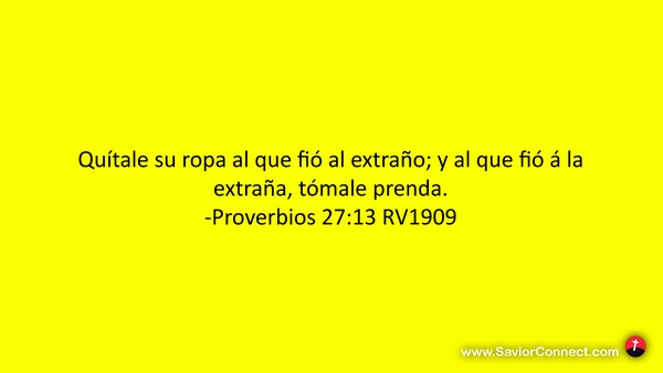 Quítale su ropa al que fió al extraño; y al que fió á la extraña, tómale prenda. -Proverbios 27:13 RV1909