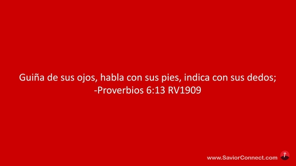 Guiña de sus ojos, habla con sus pies, indica con sus dedos; -Proverbios 6:13 RV1909
