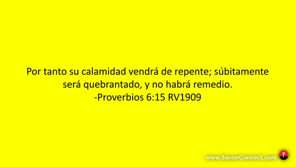 Por tanto su calamidad vendrá de repente; súbitamente será quebrantado, y no habrá remedio. -Proverbios 6:15 RV1909