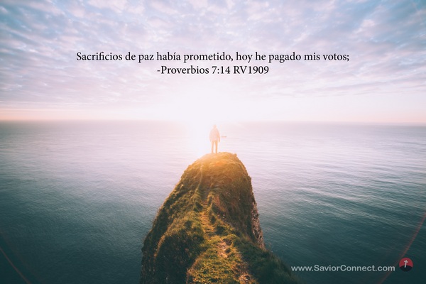 Sacrificios de paz había prometido, hoy he pagado mis votos; -Proverbios 7:14 RV1909