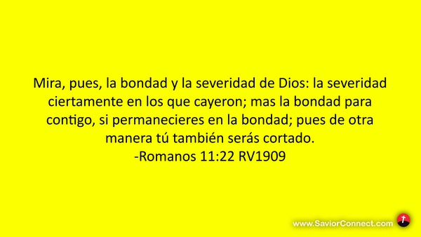 Mira, pues, la bondad y la severidad de Dios: la severidad ciertamente en los que cayeron; mas la bondad para contigo, si permanecieres en la bondad; pues de otra manera tú también serás cortado. -Romanos 11:22 RV1909