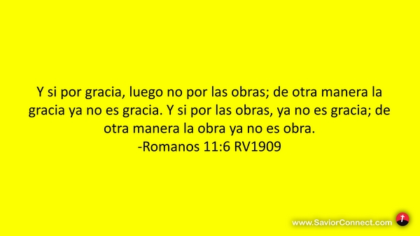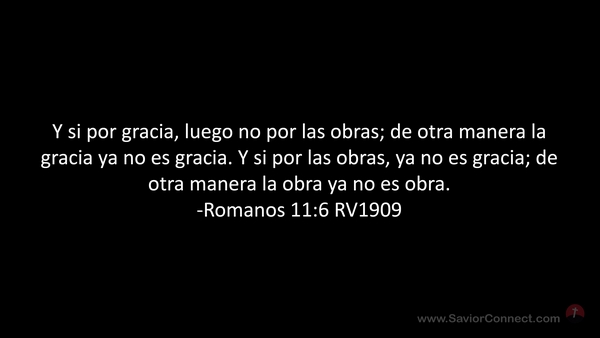 Y si por gracia, luego no por las obras; de otra manera la gracia ya no es gracia. Y si por las obras, ya no es gracia; de otra manera la obra ya no es obra. -Romanos 11:6 RV1909