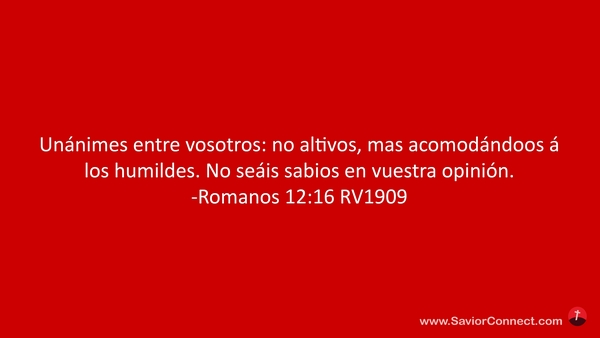 Unánimes entre vosotros: no altivos, mas acomodándoos á los humildes. No seáis sabios en vuestra opinión. -Romanos 12:16 RV1909