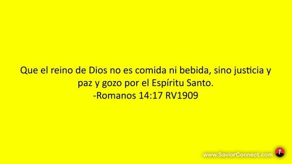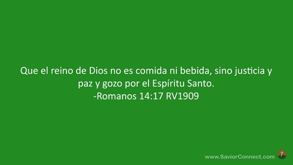Que el reino de Dios no es comida ni bebida, sino justicia y paz y gozo por el Espíritu Santo. -Romanos 14:17 RV1909