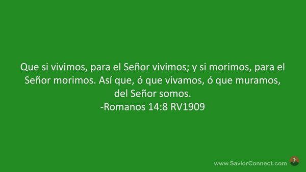 Que si vivimos, para el Señor vivimos; y si morimos, para el Señor morimos. Así que, ó que vivamos, ó que muramos, del Señor somos. -Romanos 14:8 RV1909