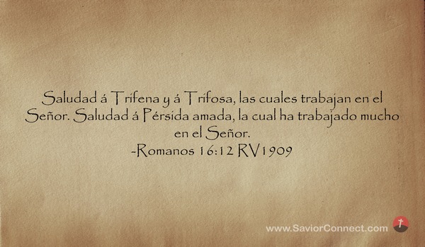 Saludad á Trifena y á Trifosa, las cuales trabajan en el Señor. Saludad á Pérsida amada, la cual ha trabajado mucho en el Señor. -Romanos 16:12 RV1909