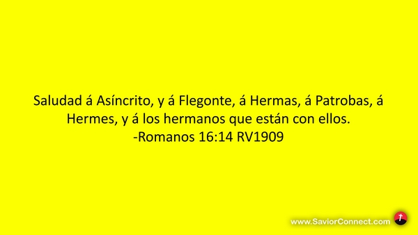 Saludad á Asíncrito, y á Flegonte, á Hermas, á Patrobas, á Hermes, y á los hermanos que están con ellos. -Romanos 16:14 RV1909