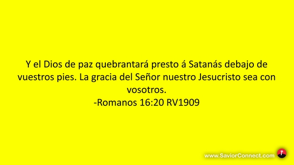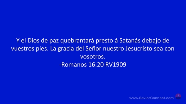 Y el Dios de paz quebrantará presto á Satanás debajo de vuestros pies. La gracia del Señor nuestro Jesucristo sea con vosotros. -Romanos 16:20 RV1909