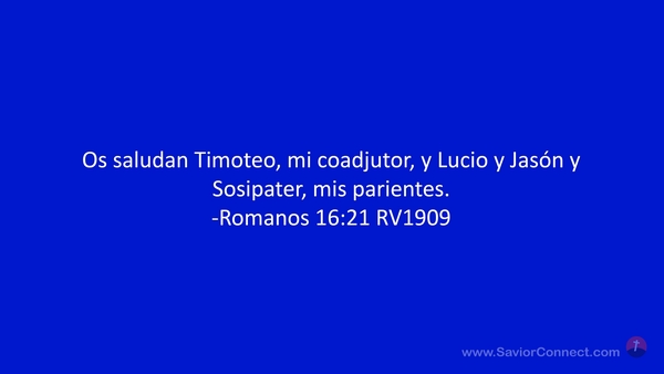 Os saludan Timoteo, mi coadjutor, y Lucio y Jasón y Sosipater, mis parientes. -Romanos 16:21 RV1909
