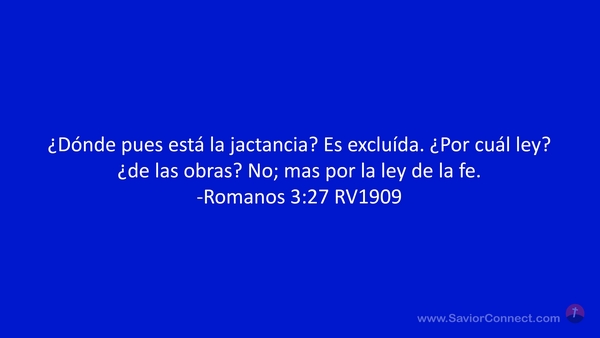 ¿Dónde pues está la jactancia? Es excluída. ¿Por cuál ley? ¿de las obras? No; mas por la ley de la fe. -Romanos 3:27 RV1909