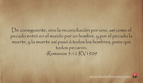 De consiguiente, vino la reconciliación por uno, así como el pecado entró en el mundo por un hombre, y por el pecado la muerte, y la muerte así pasó á todos los hombres, pues que todos pecaron. -Romanos 5:12 RV1909