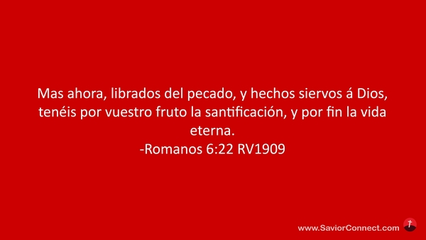 Mas ahora, librados del pecado, y hechos siervos á Dios, tenéis por vuestro fruto la santificación, y por fin la vida eterna. -Romanos 6:22 RV1909