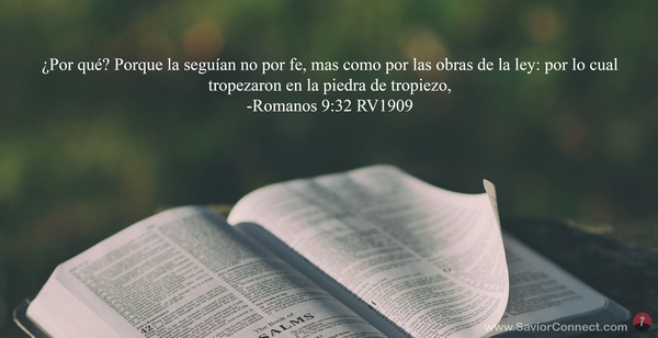 ¿Por qué? Porque la seguían no por fe, mas como por las obras de la ley: por lo cual tropezaron en la piedra de tropiezo, -Romanos 9:32 RV1909