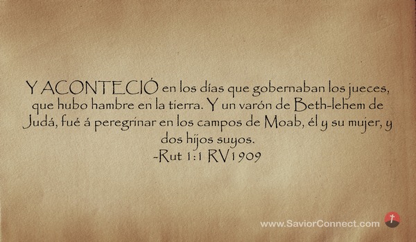 Y ACONTECIÓ en los días que gobernaban los jueces, que hubo hambre en la tierra. Y un varón de Beth-lehem de Judá, fué á peregrinar en los campos de Moab, él y su mujer, y dos hijos suyos. -Rut 1:1 RV1909