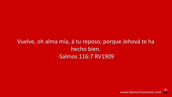 Vuelve, oh alma mía, á tu reposo; porque Jehová te ha hecho bien. -Salmos 116:7 RV1909