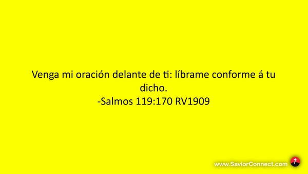 Venga mi oración delante de ti: líbrame conforme á tu dicho. -Salmos 119:170 RV1909