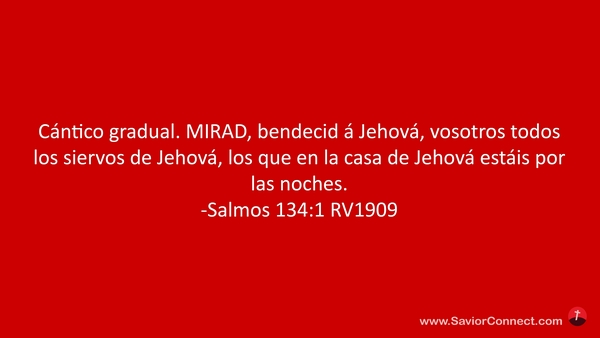 Cántico gradual. MIRAD, bendecid á Jehová, vosotros todos los siervos de Jehová, los que en la casa de Jehová estáis por las noches. -Salmos 134:1 RV1909