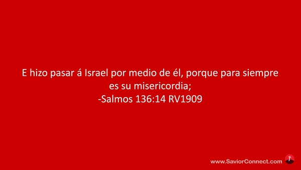 E hizo pasar á Israel por medio de él, porque para siempre es su misericordia; -Salmos 136:14 RV1909
