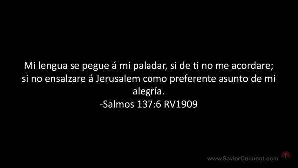 Mi lengua se pegue á mi paladar, si de ti no me acordare; si no ensalzare á Jerusalem como preferente asunto de mi alegría. -Salmos 137:6 RV1909