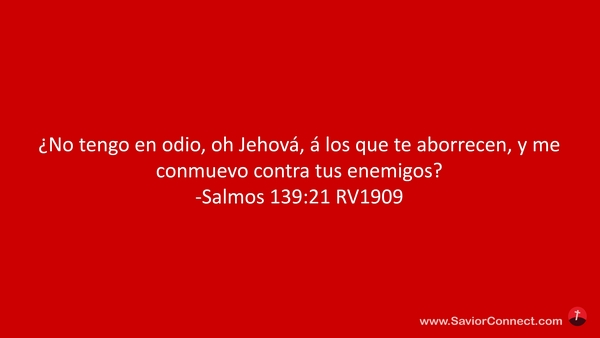 ¿No tengo en odio, oh Jehová, á los que te aborrecen, y me conmuevo contra tus enemigos? -Salmos 139:21 RV1909