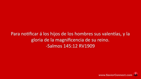 Para notificar á los hijos de los hombres sus valentías, y la gloria de la magnificencia de su reino. -Salmos 145:12 RV1909