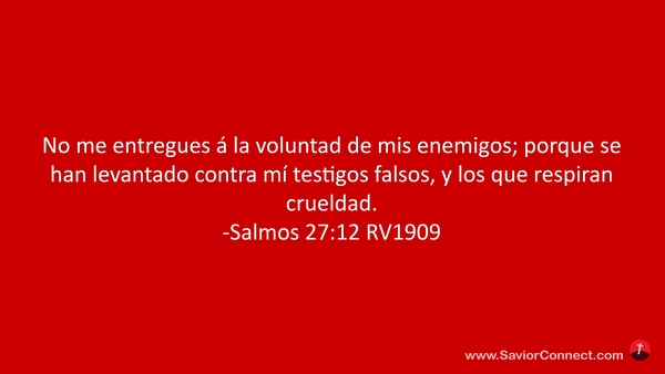 No me entregues á la voluntad de mis enemigos; porque se han levantado contra mí testigos falsos, y los que respiran crueldad. -Salmos 27:12 RV1909