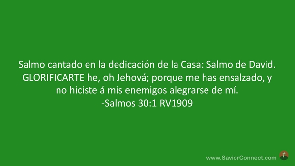 Salmo cantado en la dedicación de la Casa: Salmo de David. GLORIFICARTE he, oh Jehová; porque me has ensalzado, y no hiciste á mis enemigos alegrarse de mí. -Salmos 30:1 RV1909